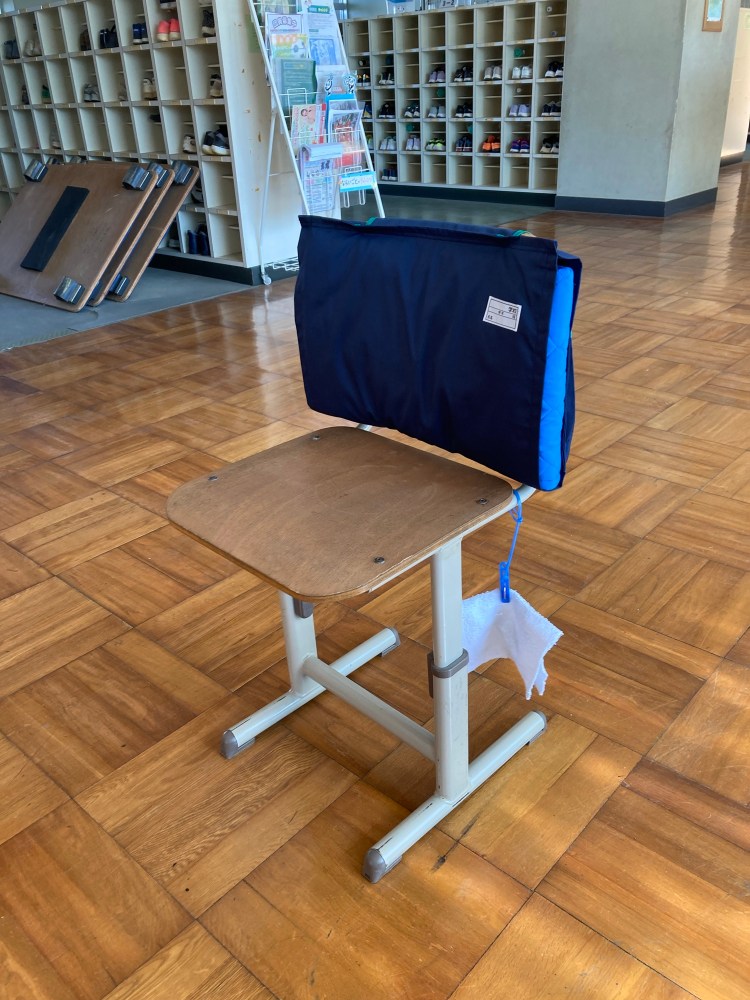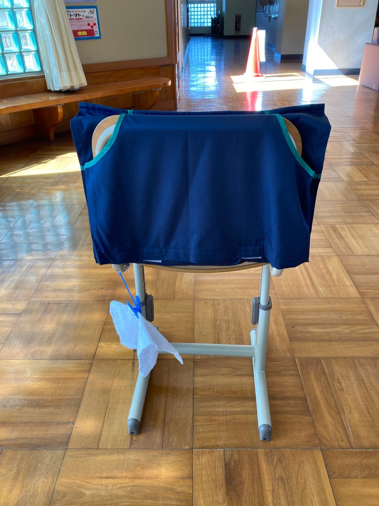 災害に備え教室のイスに常備します