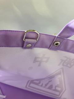 サイズ:幅34.5cm✖高27cm✖マチ9cm 内ポケット付き 名前欄あり 肩掛けベルト用金具付き 淵巻きなし 底板なし ※肩ベルトは別売